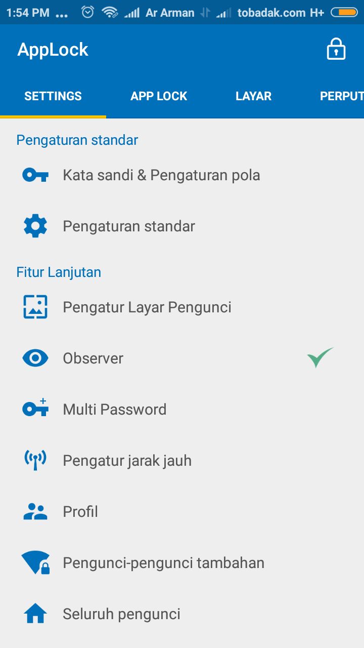 Smart Applock selain memiliki fitur potret juga bisa merekam video penyusup yang salah memasukkan sandi, mendukung fitur finggerprint, tema locksreen juga bisa diganti dengan gambarmu sendiri. Mengatur jumlah titik pola, umumnya ada 9 pola, di Smart Applock kamu bisa atur jumlah titik polanya, selain itu juga terdapat 4 tipe pengunci, Kata Sandi(Nomor), Pola, Kata Sandi Karakter dan Gesture. Untuk mengaktifkan fitur kunci aplikasi pilih pada tab App Lock dan tambahkan aplikasi yang ingin diamankan dengan sandi. Sedangkan untuk mengunci telepon dari layar depan (Home) pilih menu tab Setting > Seluruh Pengunci dan aktifkan. Selain keunggulannya dapat merekam video penyusup, aplikasi ini juga bebas dari iklan pada layar lockscreen. Jadi kalau mimin pribadi lebih suka Smart Applock ini. Download Smark AppLock di sini.